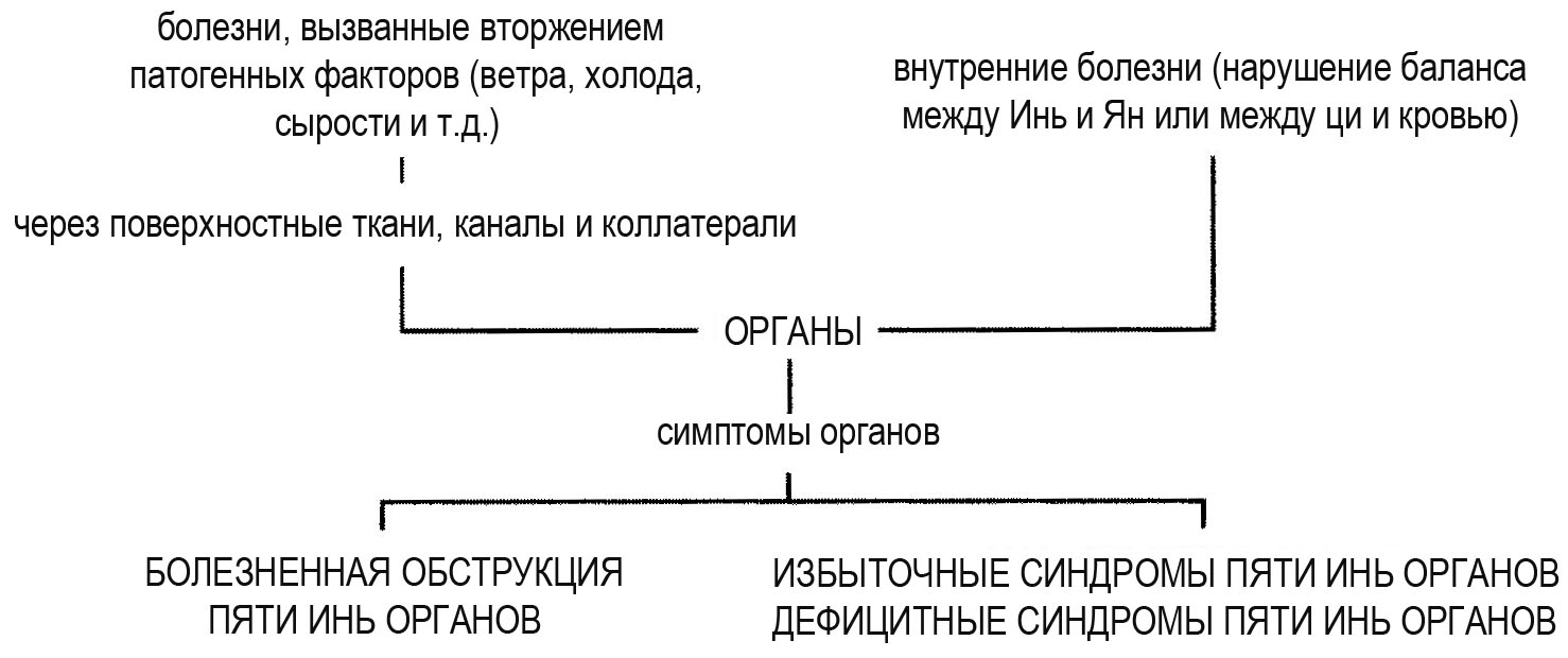 Болезненная обструкция в общем смысле включает в себя обструкцию органов Инь, с симптомами, основанными на том, какой из органов Инь поражен.