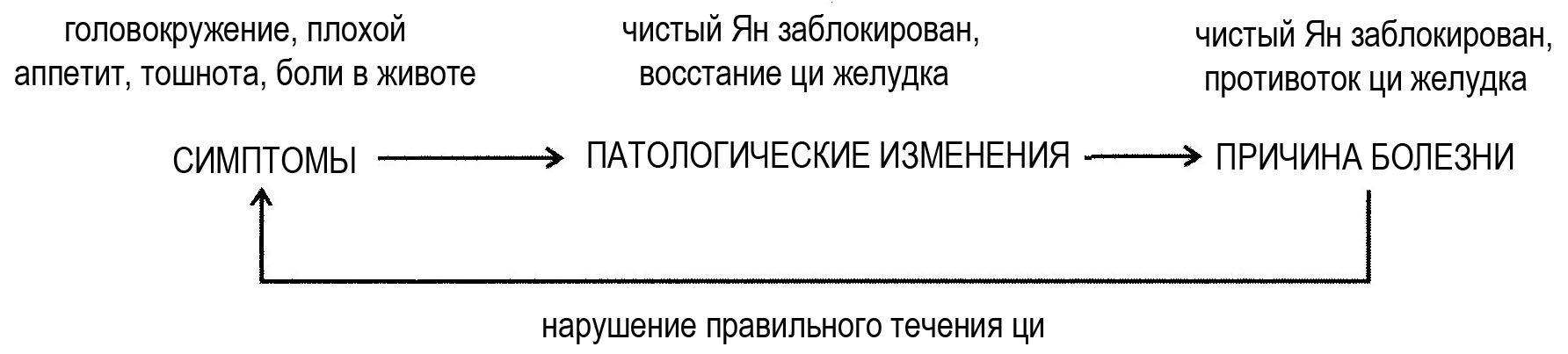 2. Тошнота, плохой аппетит, боли в животе — дисфункция восходящей ци селезенки и нисходящей ци желудка.