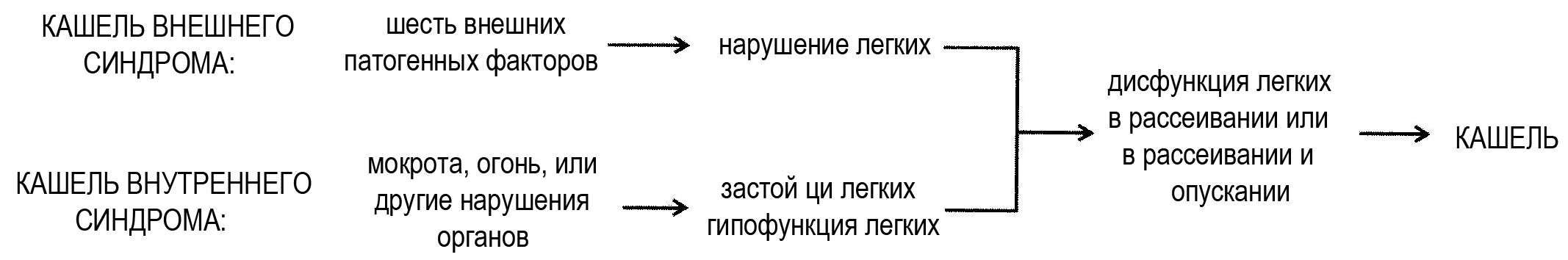 i. Кашель может быть вызван вторжением в организм любого из шести внешних патогенных факторов. Независимо от того, какой патогенный фактор задействован, или поражена ли кожа или рот и нос, патологическое изменение всегда вызывает дисфункцию ци легких в рассеивании и нисхождении. При различении восьми принципов это синдром избытка.