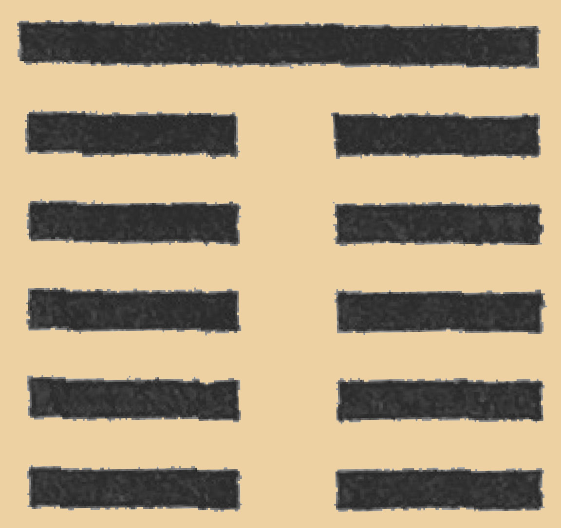 В структуре гексаграмм И цзин сплошная линия символизирует влияние Ян, а прерывистая линия – влияние Инь.